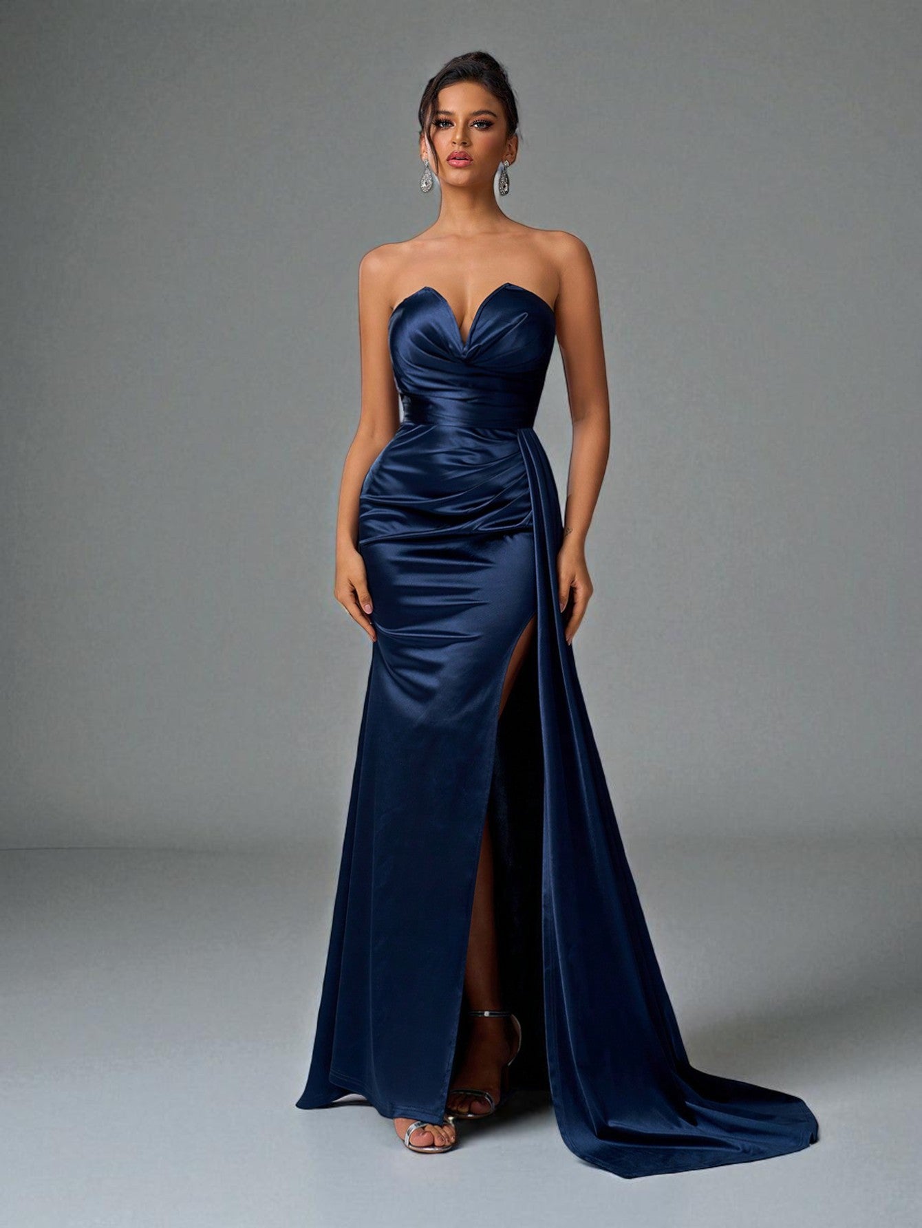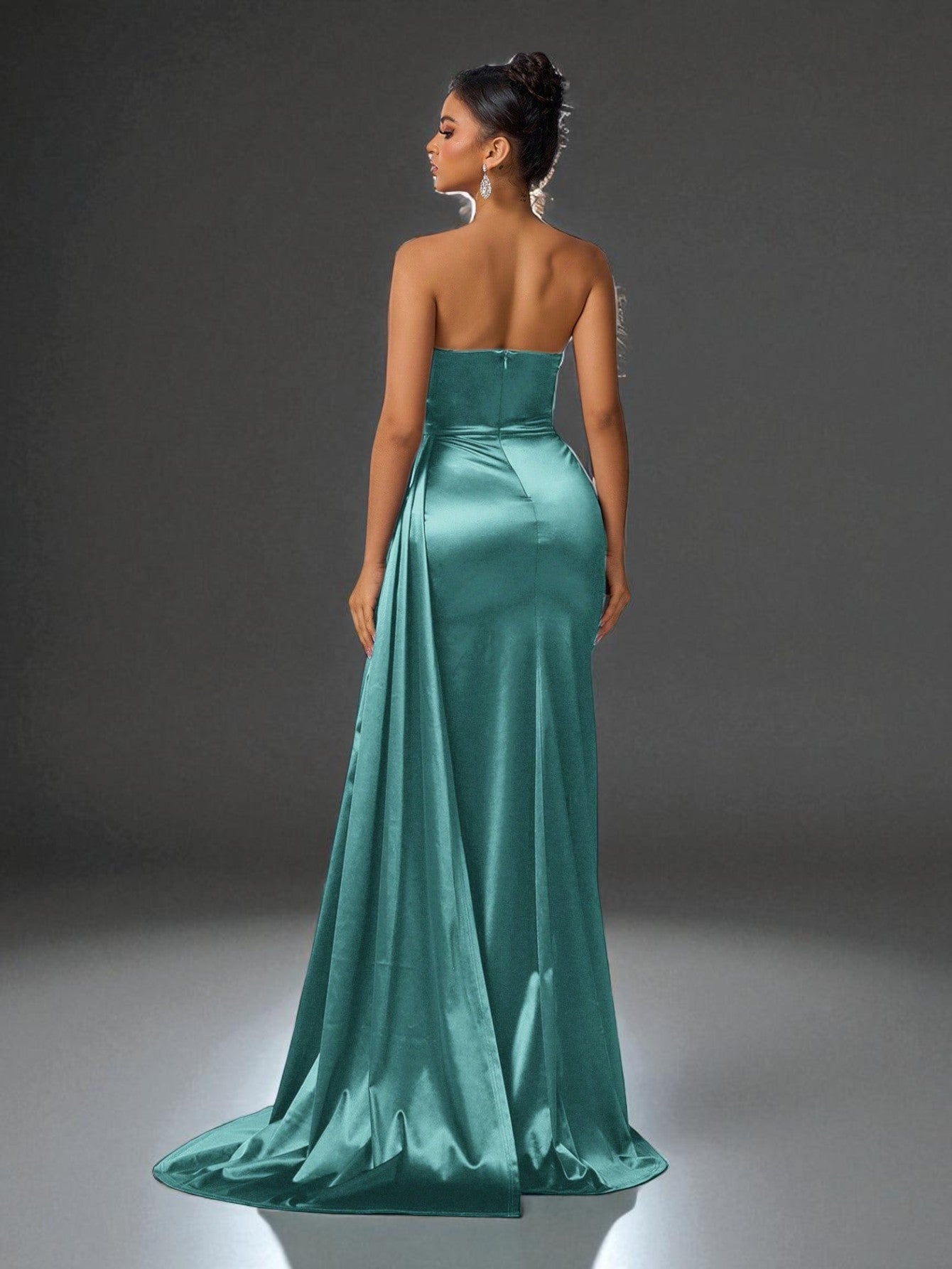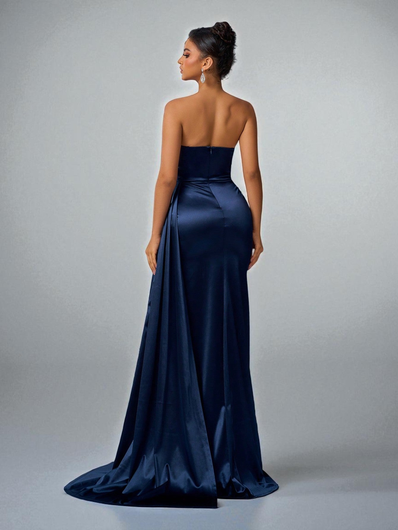 Brilhe em qualquer evento com este vestido de festa longo tomara que caia com cauda extreme, perfeito para formaturas, casamentos e eventos de gala.