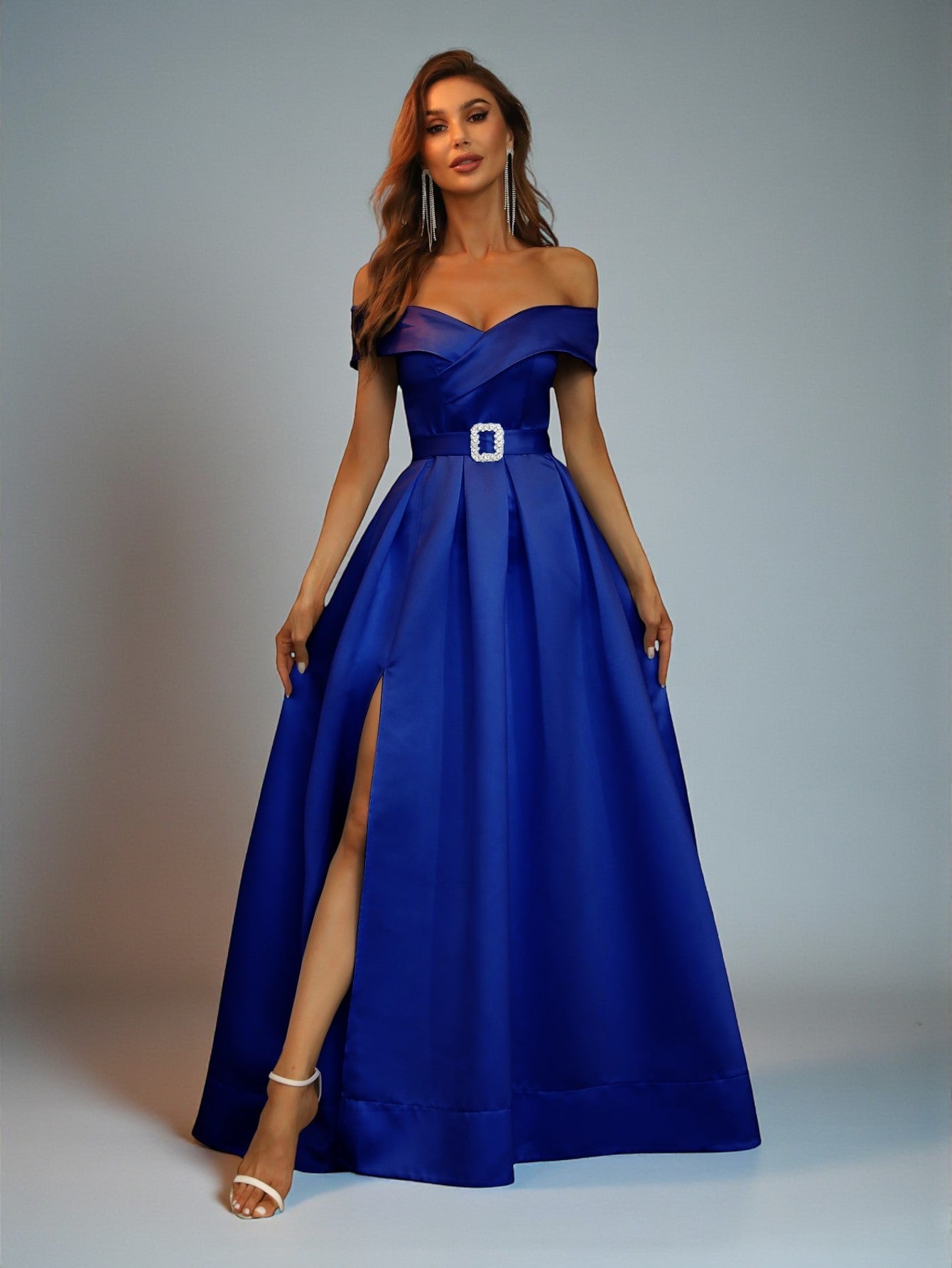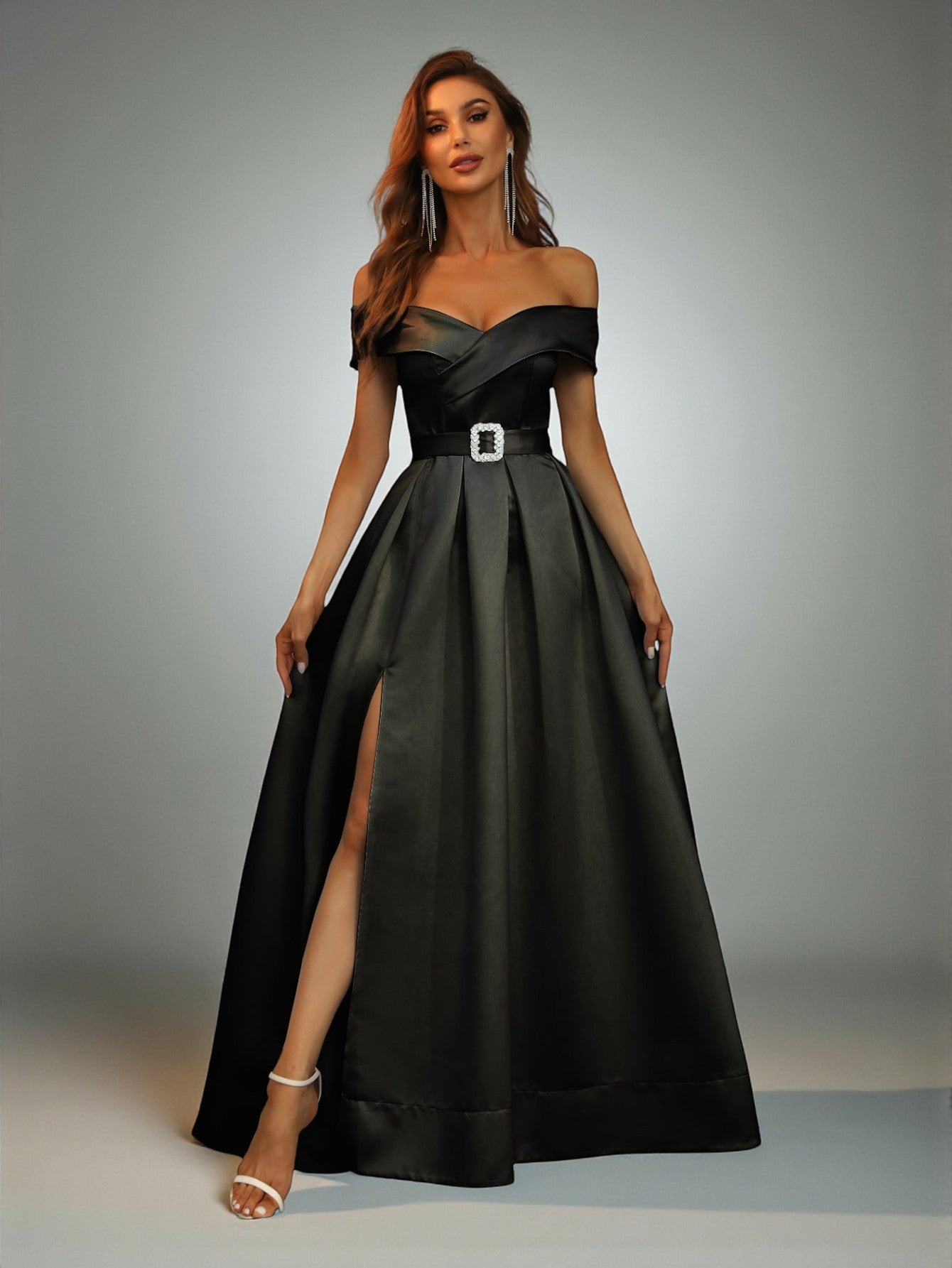 - Vestido de Festa Longo Zibeline Ombro a Ombro com Cinto Bellinda